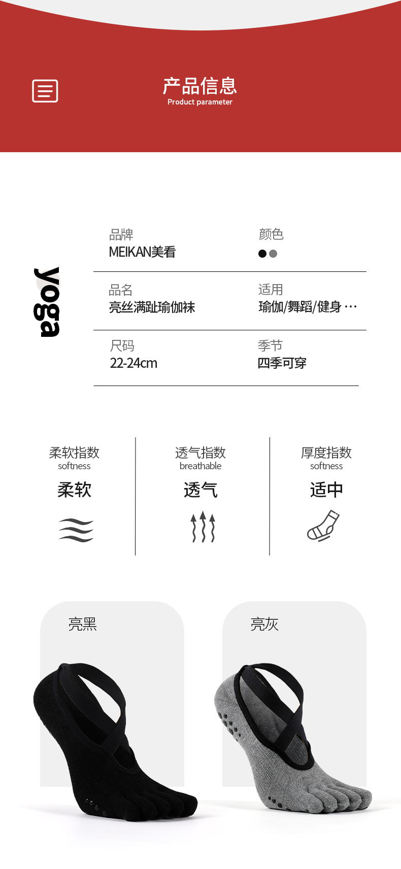MEIKAN亮丝满趾瑜伽袜