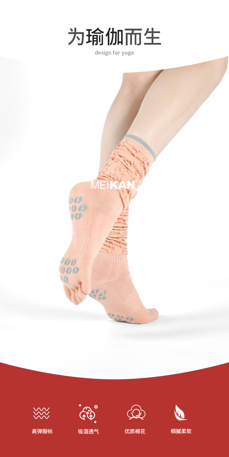MEIKAN撞色堆堆瑜伽袜