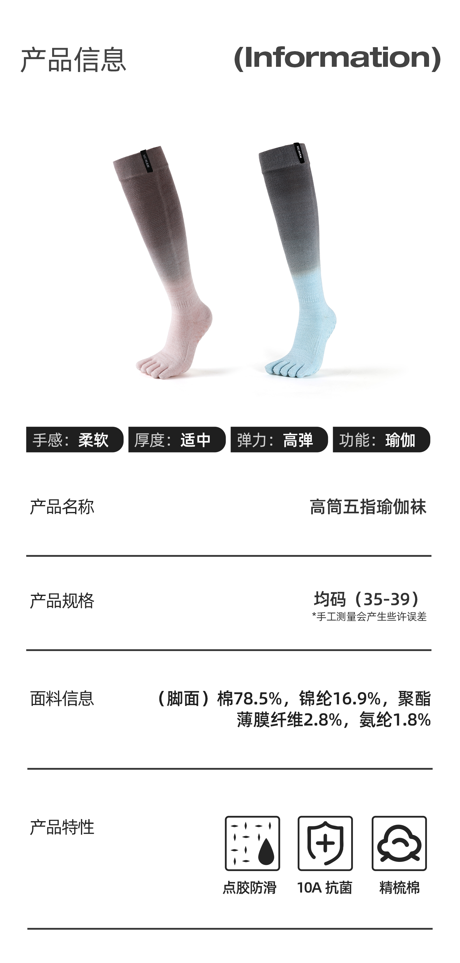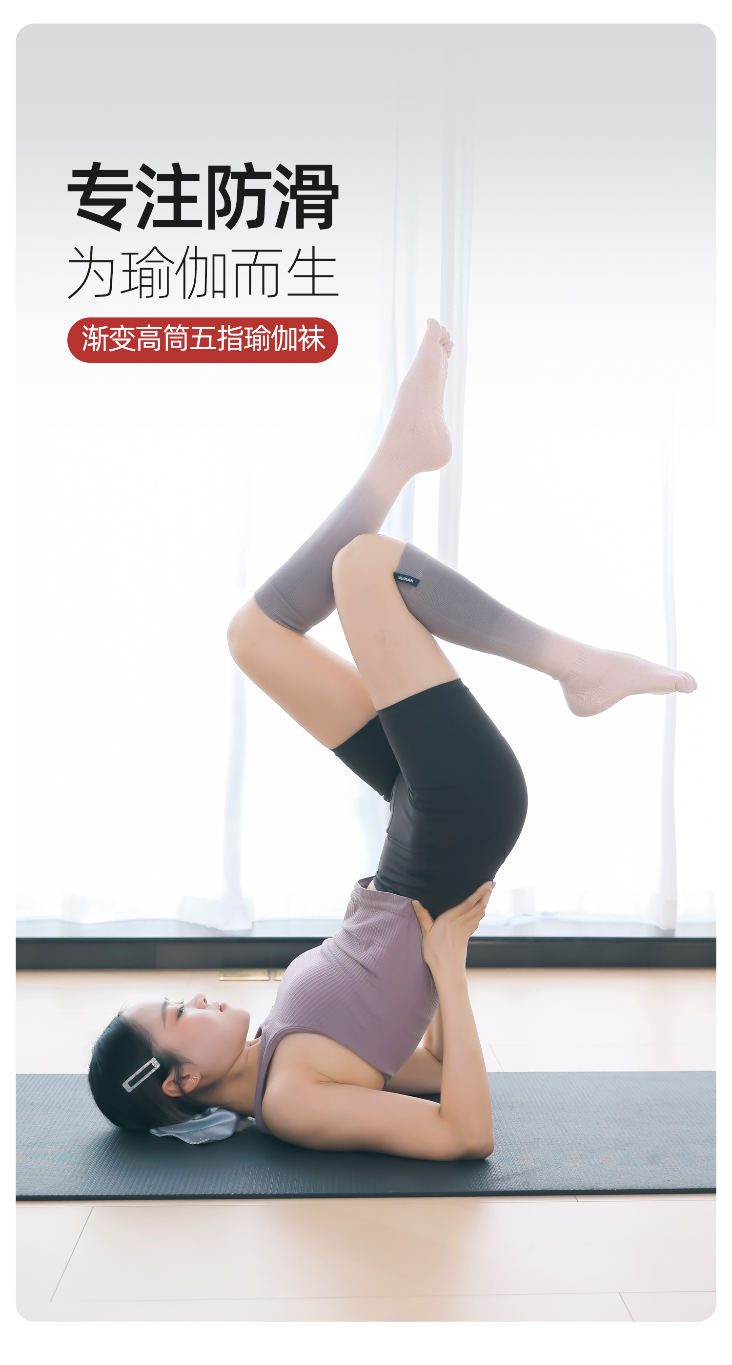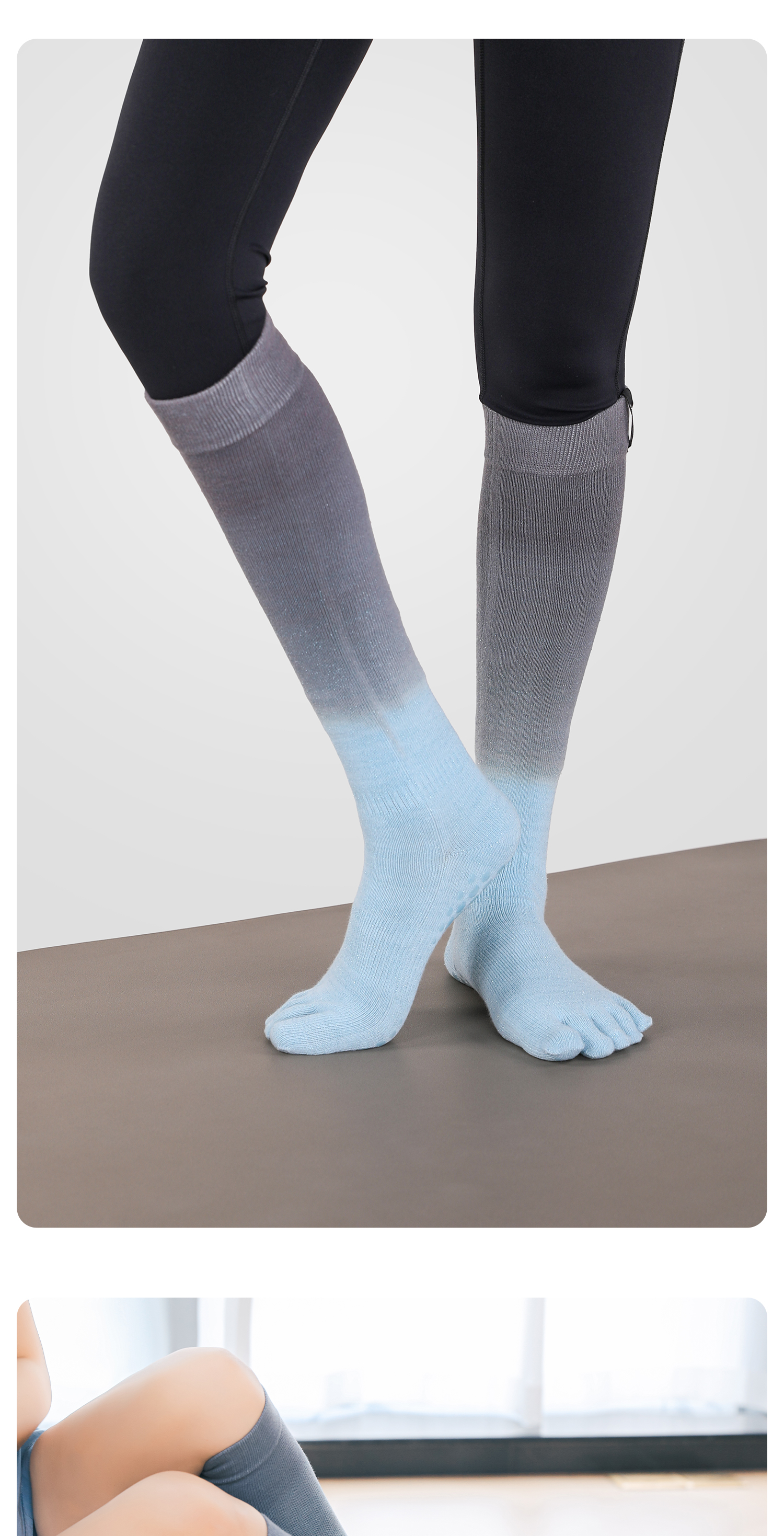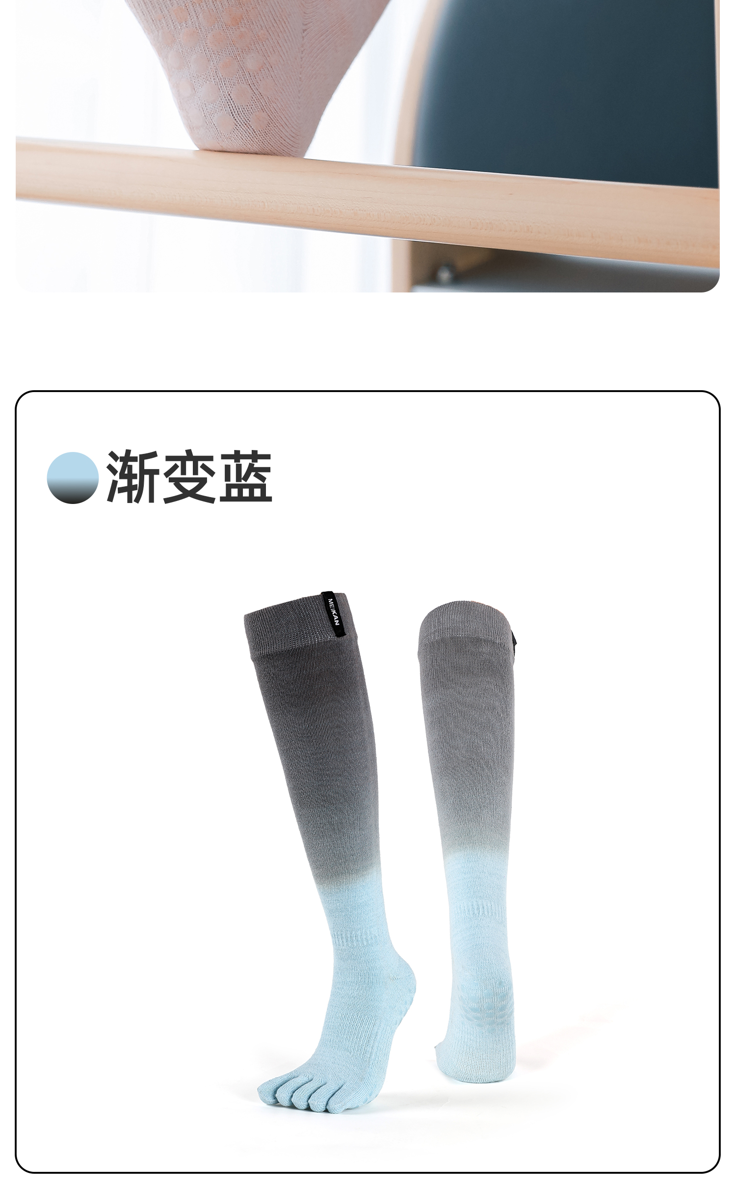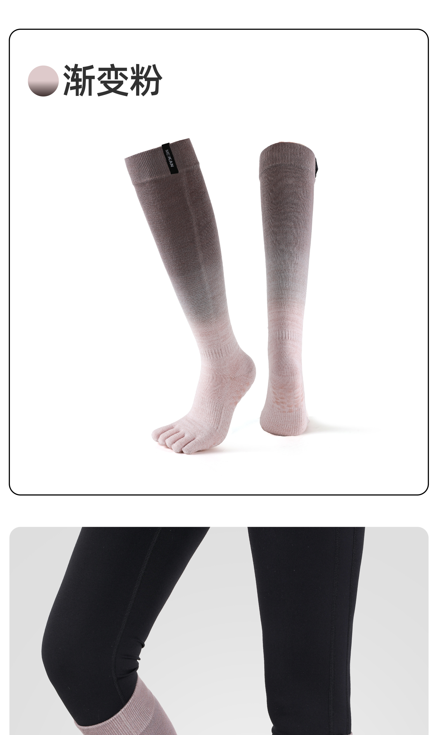 MEIKAN渐变高筒五指瑜伽袜